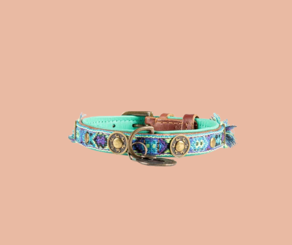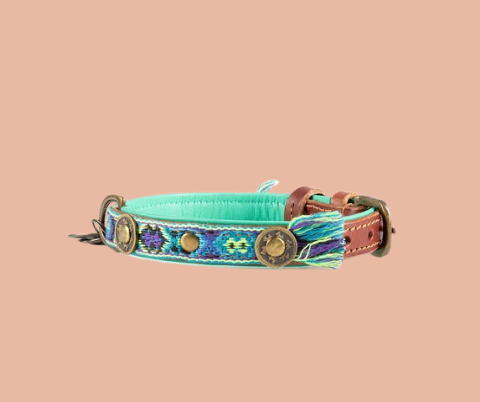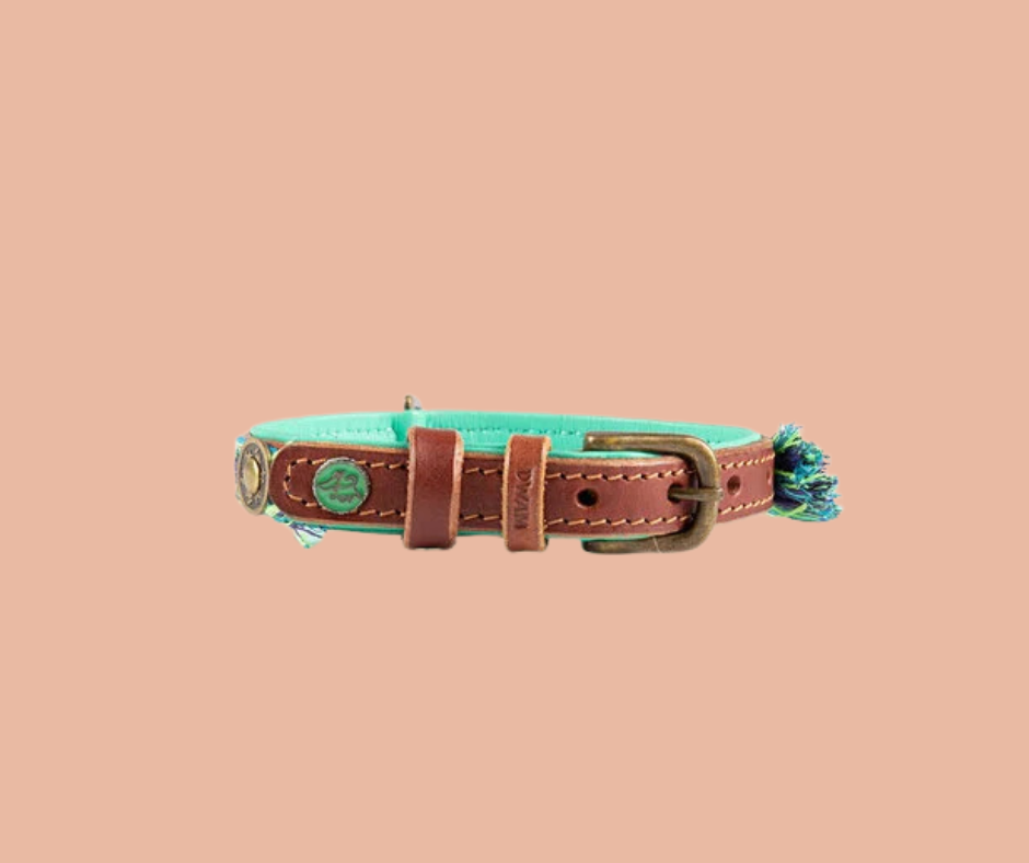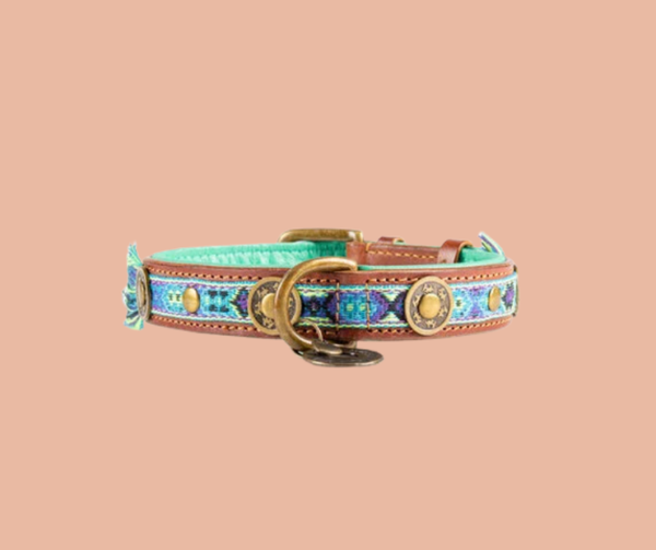 Elke halsband is met zorg geborduurd en gestikt, wat resulteert in een tijdloos design dat barst van kleur en persoonlijkheid. De warme bruintint gecombineerd met levendig blauw maakt deze halsband een echte eyecatcher.
