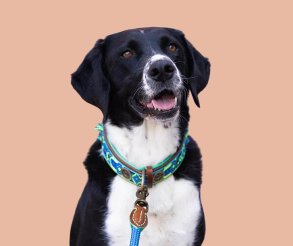 Boho Juan Blauwe Leren Hondenhalsband - Dog with a Mission